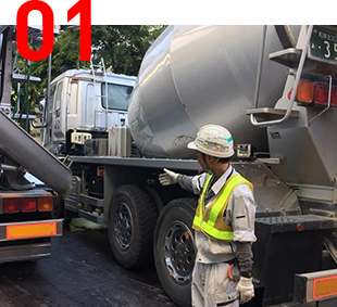 ミキサー車が到着したら誘導し、納入に立会います。